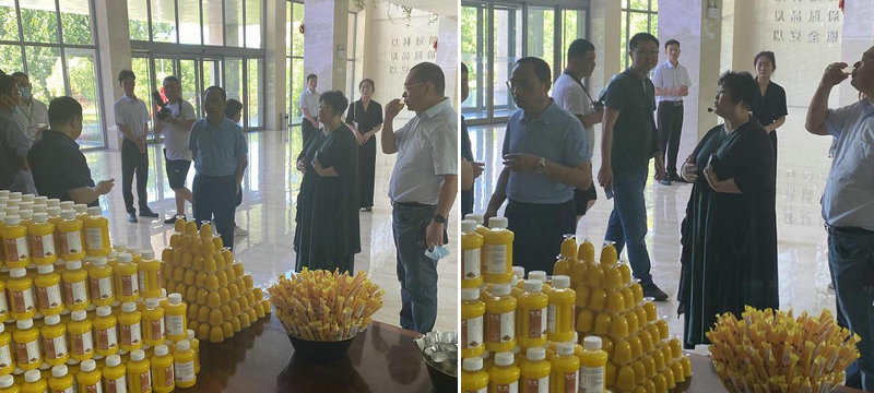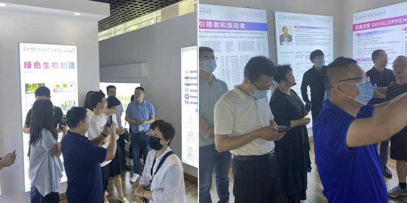 在綠色生物制造展廳,與會嘉賓對公司綠色循環發展模式表現出巨大興趣,紛紛拍照留念。